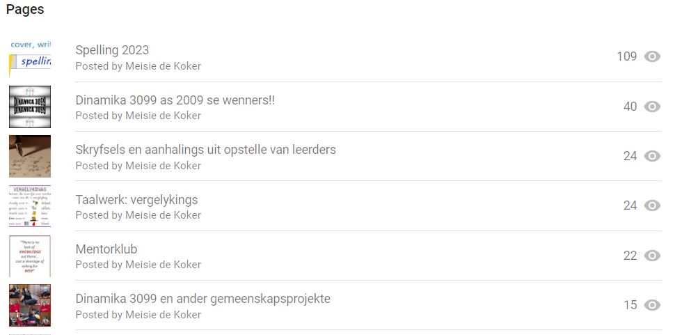 Bogenoemde statistiek is slegs die getalle vir die afgelope maand. Die page wat 'n groot gunsteling onder die lesers is, is Spelling 2023. Dis geen wonder nie, want die afgelope ruk gons dit in die media omdat SA-kinders nie kan lees of spel nie. Klik HIER om 'n vinnige draai by Spelling 2023 te maak.